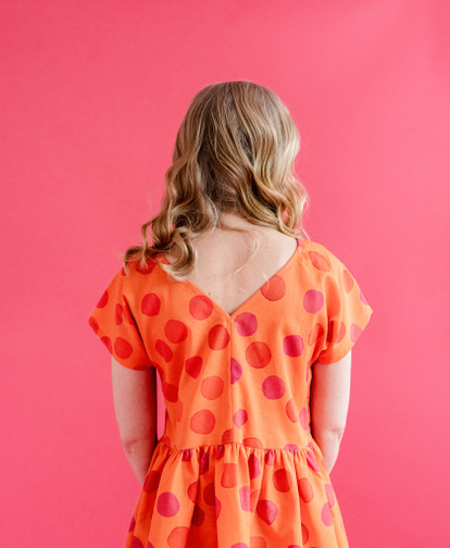 Maisa-mekko tehdään samoilla kaavoilla Liisi-mekon kanssa, mutta mittasuhteita muutetaan lyhentämällä hihoja ja pidentämällä helmaa.